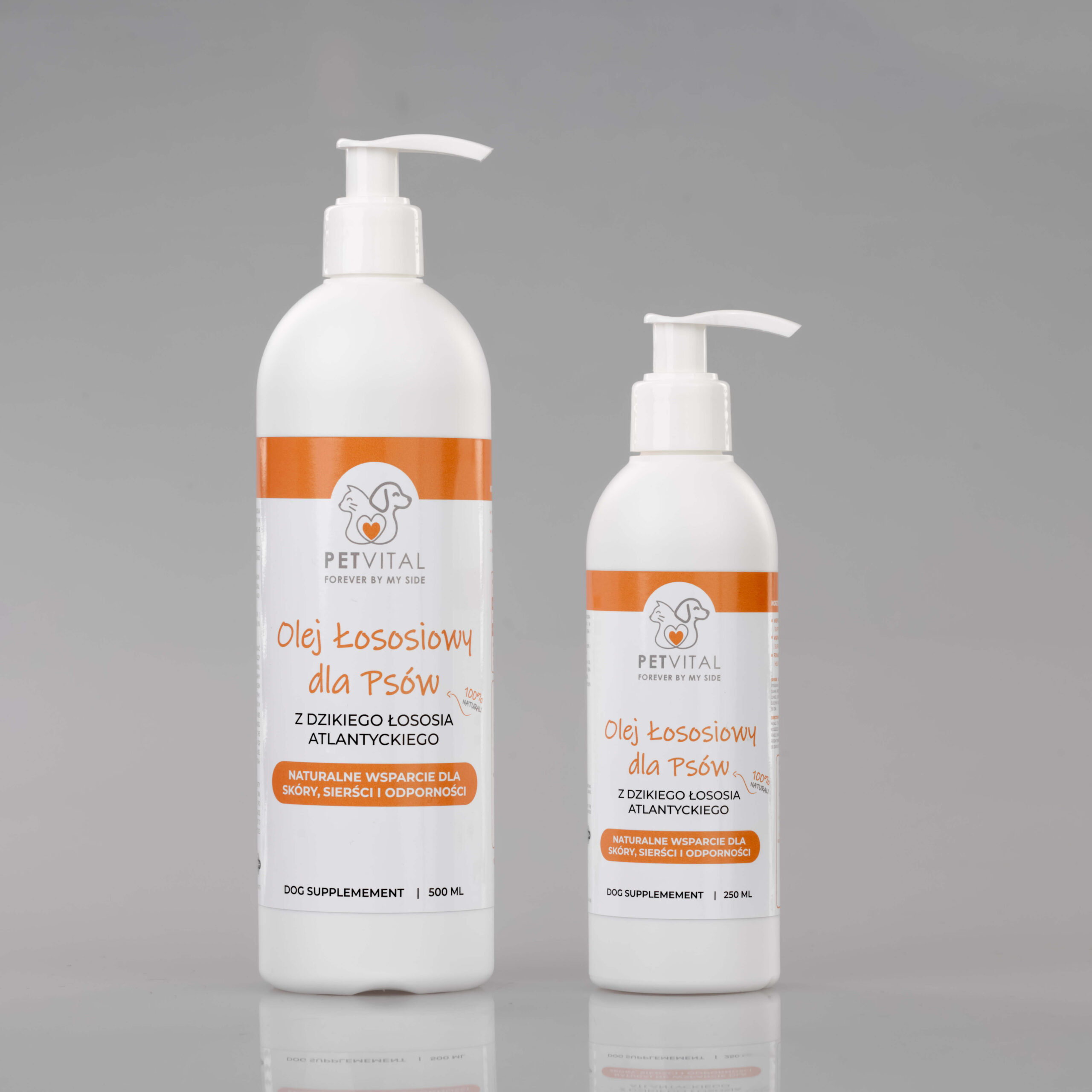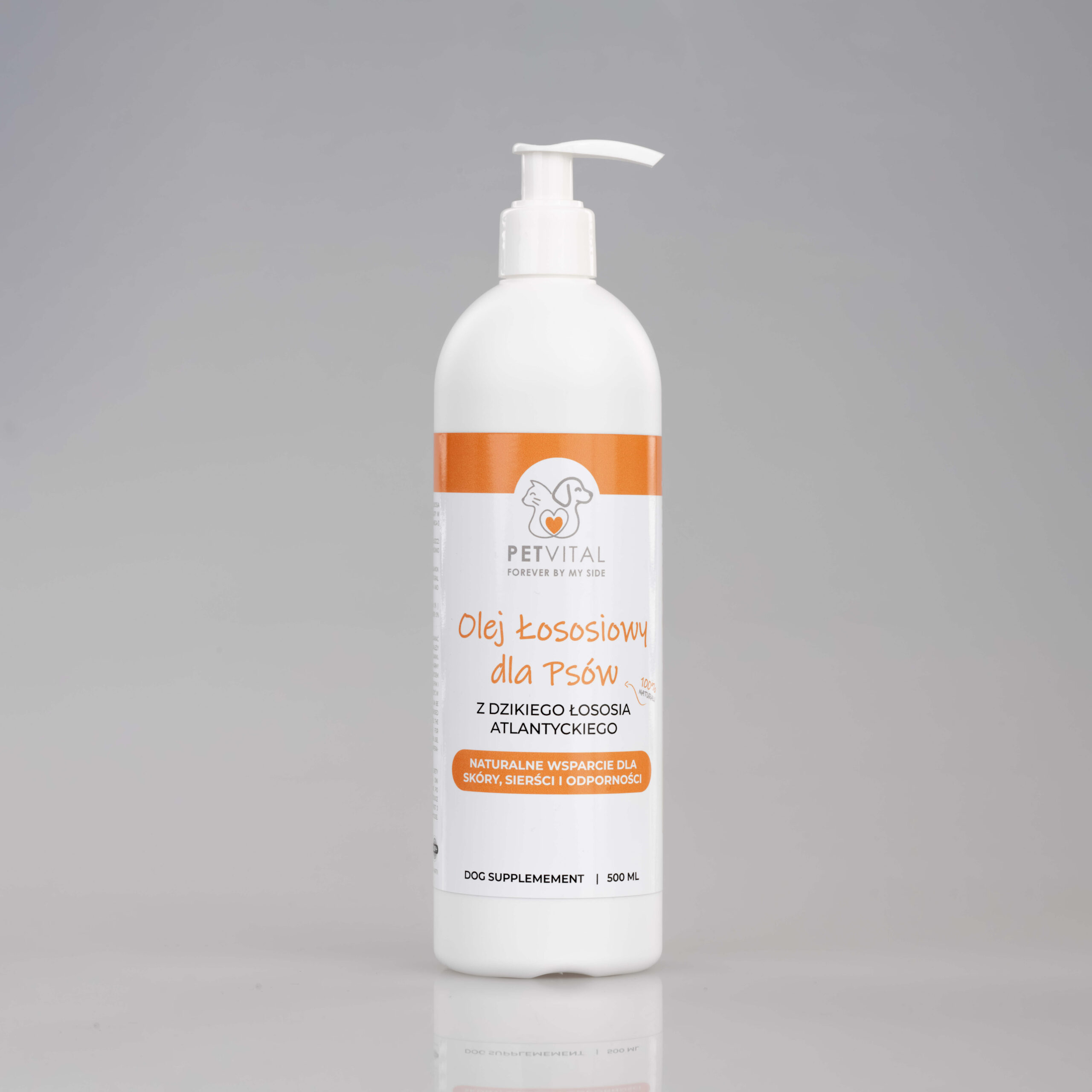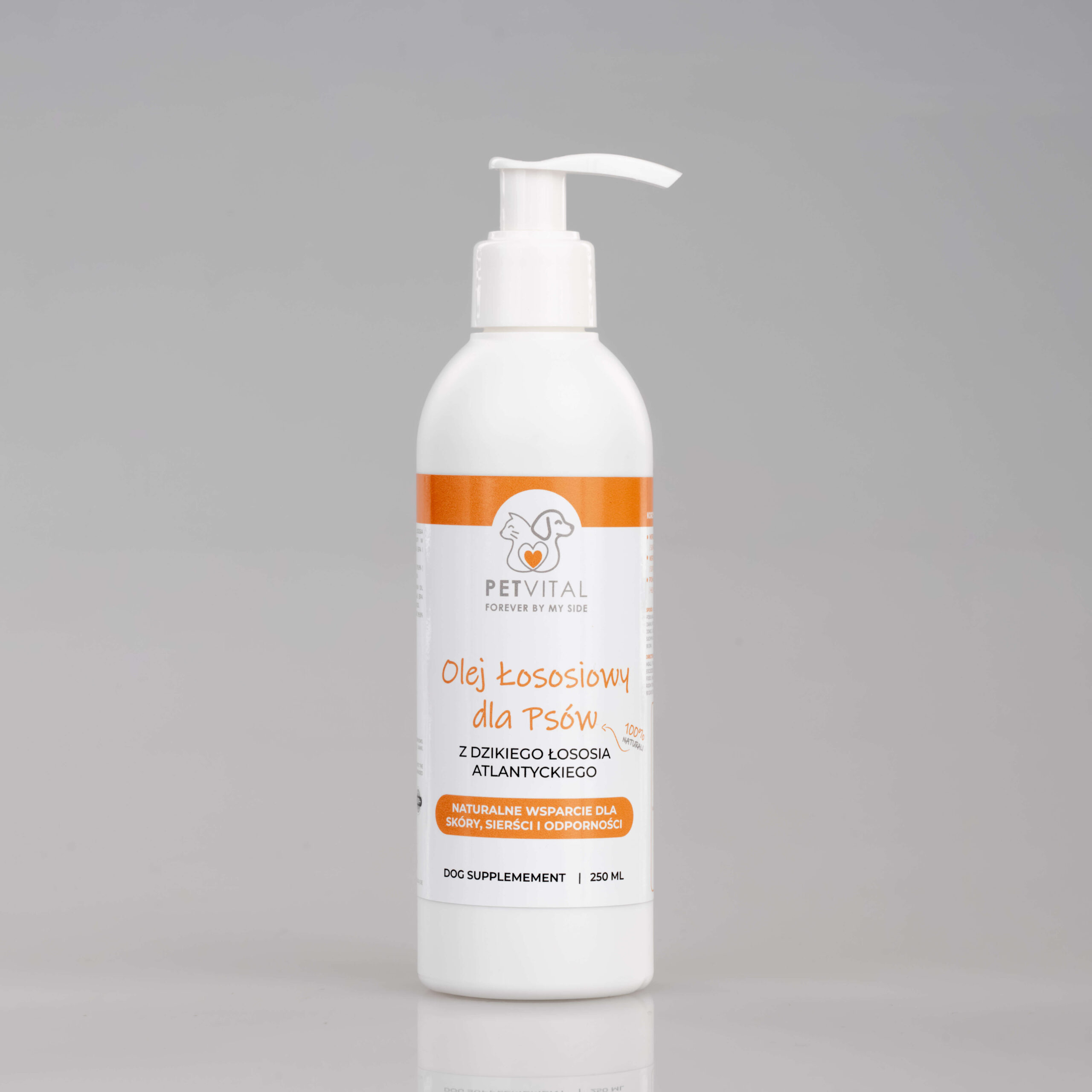 Nasz olej z łososia to w 100% naturalny produkt, tłoczony na zimno, który poprawia samopoczucie i kondycję pupila. Regularne stosowanie: