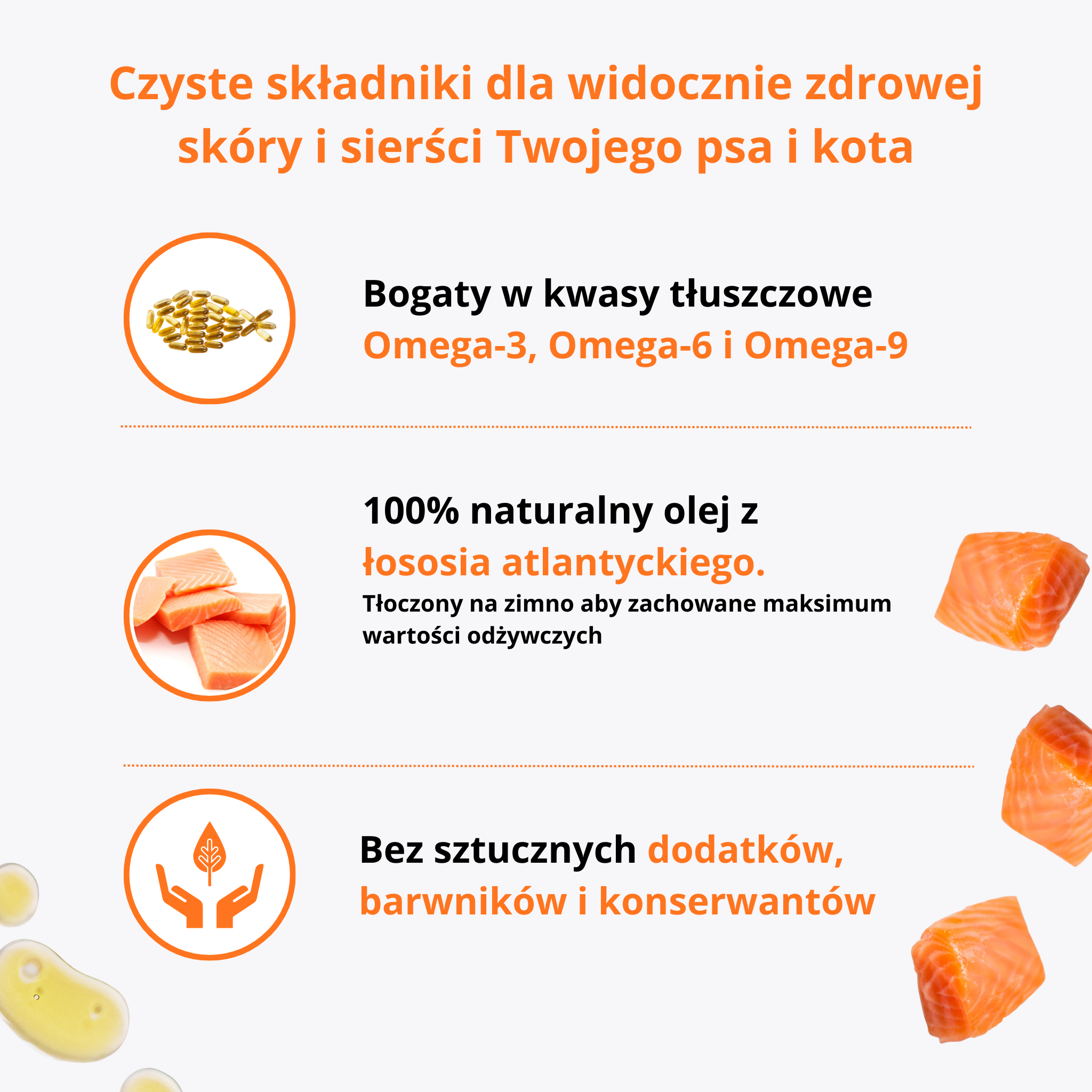 Dzięki dodatkowi oleju łososiowego Twój pies lub kot zyska nie tylko smaczny posiłek, ale także realne wsparcie zdrowia.